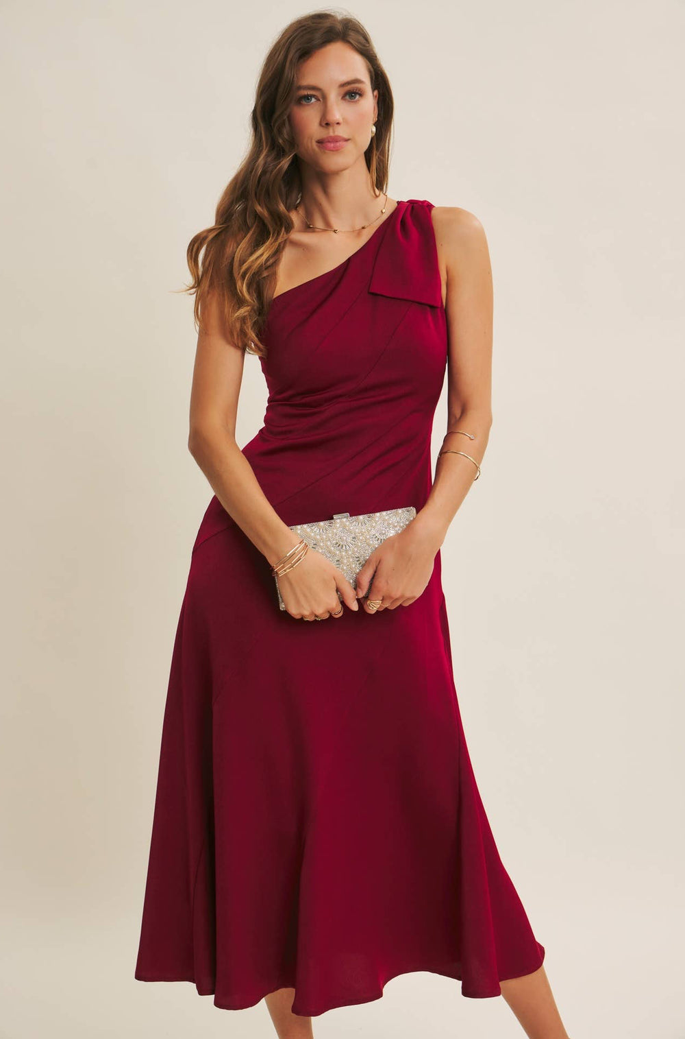 Bordeaux One Shoulder Midi Dress