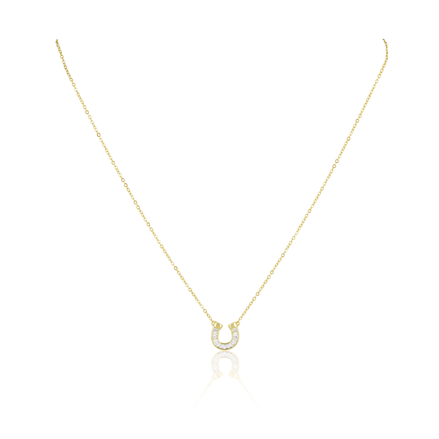 This delicate piece features a dainty horseshoe charm on a fine gold chain, offering a touch of romance and sophistication. Perfect for layering or wearing solo, this necklace adds a subtle sparkle to any outfit.