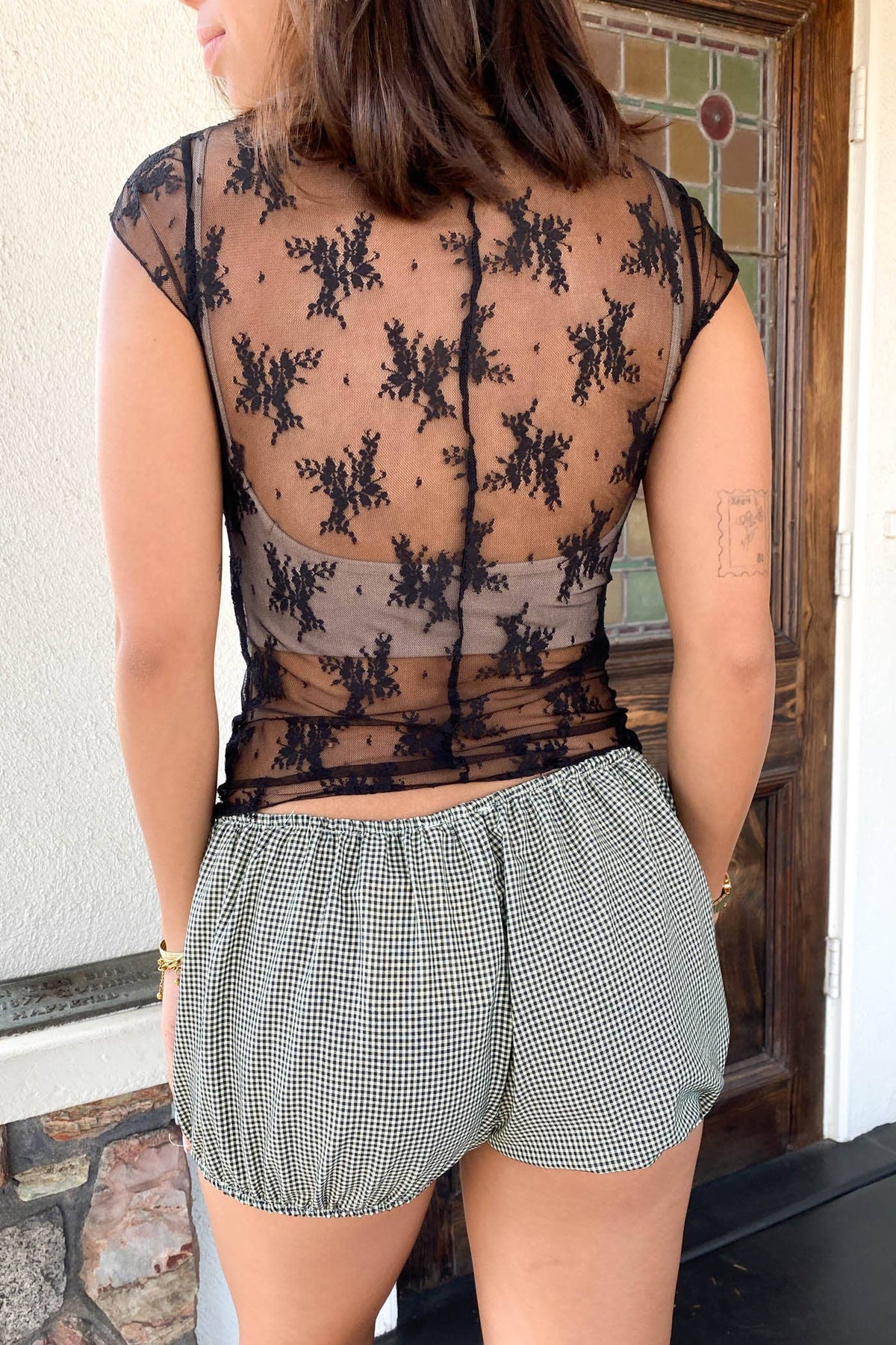 Short Sleeve Lace Layering Top