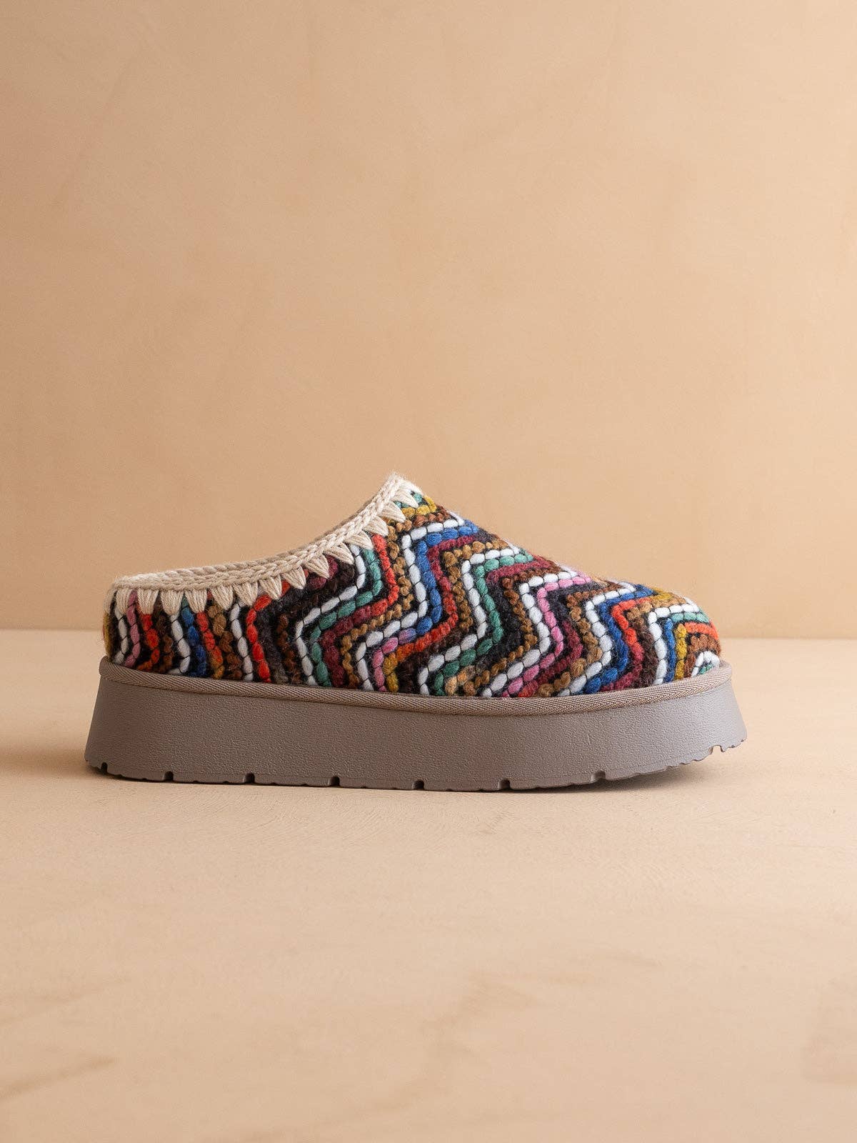 The cozy essential platform with a twist! The BRANDI channels that plush, shearling-lined insole, whipstitch trim, an ultra-lightweight platform sole and a colorful multi knit texture — your new go-to for off-duty days and indoor-outdoor lounging.