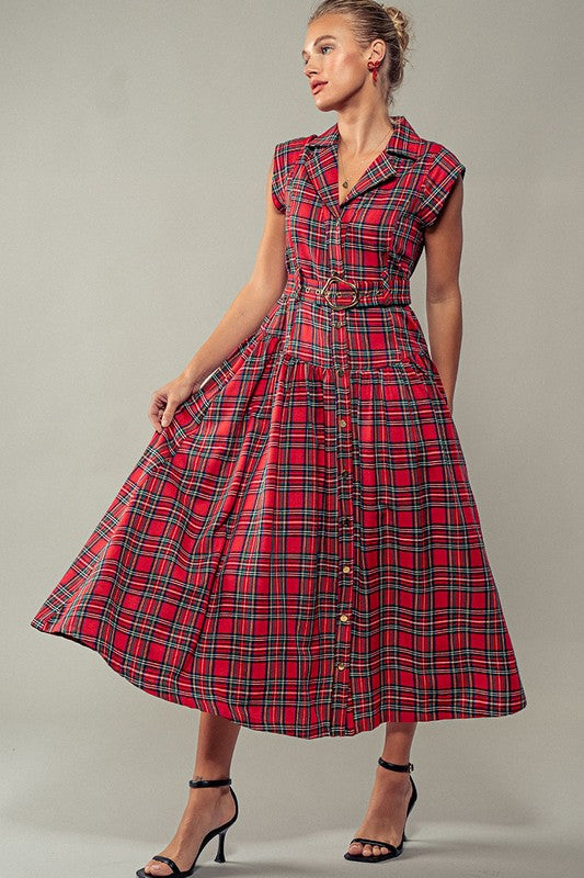 Dashing Plaid Belted A-Line Dress final sale